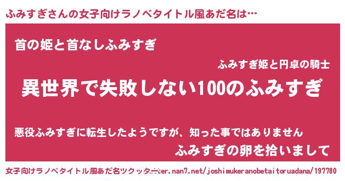 | 男性向けラノベタイトル風あだ名 | 『ふみすぎという概念が存在しない退屈な世界 』 |