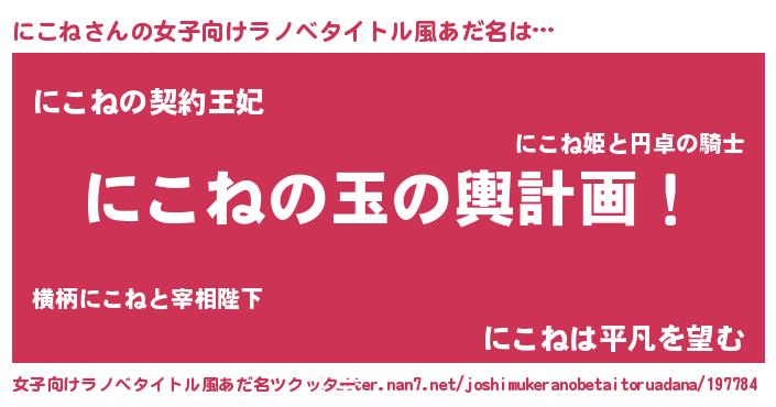 | ヒーロー風カッコイイあだ名 | 『ネオニコネ』『幻影騎士ニコ』 |