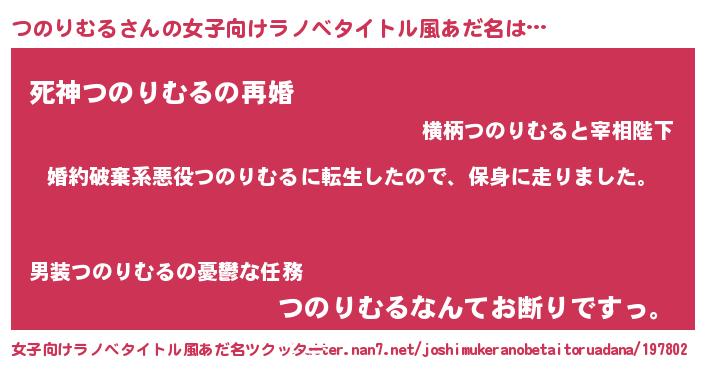 | 男性向けラノベタイトル風あだ名 | 『ツノリムルスレイヤー』 |