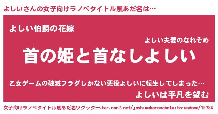 | 男性向けラノベタイトル風あだ名 | 『はたらくよしいさま!』 |