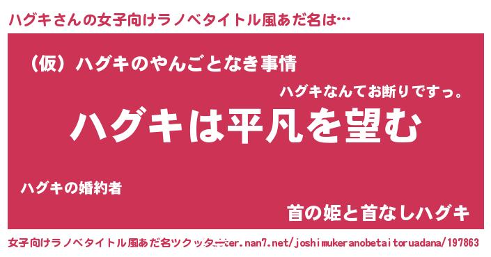 | 意味不明あだ名 | 『とにかく怪しいハグキ』『自称ハグキ』 |
