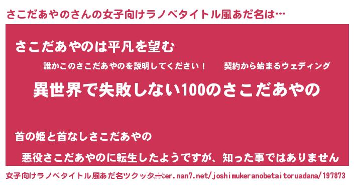 | 男性向けラノベタイトル風あだ名 | 『さこだあやのという概念が存在しない退屈な世界 』 |