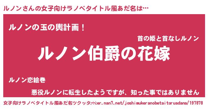 | 男性向けラノベタイトル風あだ名 | 『やはりルノンの青春ラブコメはまちがっている 』 |