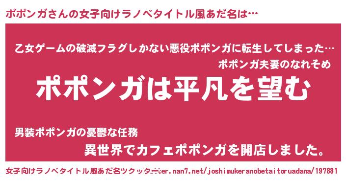 | 男性向けラノベタイトル風あだ名 | 『ダンジョンにポポンガを求めるのは間違っているだろうか』 |