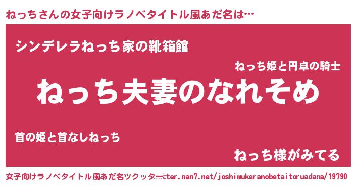 | 男性向けラノベタイトル風あだ名 | 『おまえをオタクにしてやるから、俺をねっちにしてくれ! 』 |