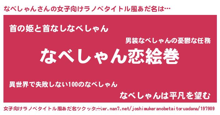 | 男性向けラノベタイトル風あだ名 | 『ノーゲーム・ノーナベシャン』 |