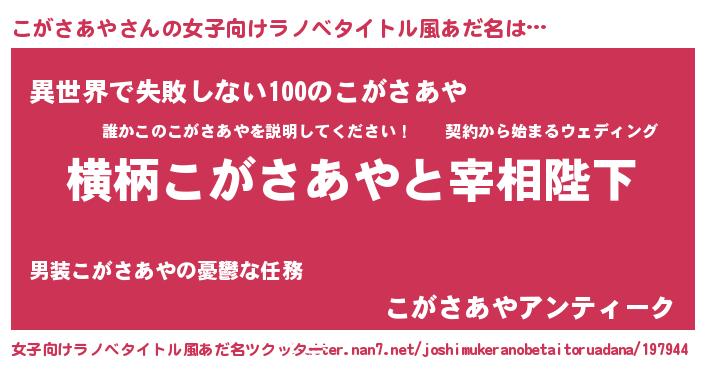 | 男性向けラノベタイトル風あだ名 | 『こがさあやに滅ぼされるだけの簡単なお仕事です』 |
