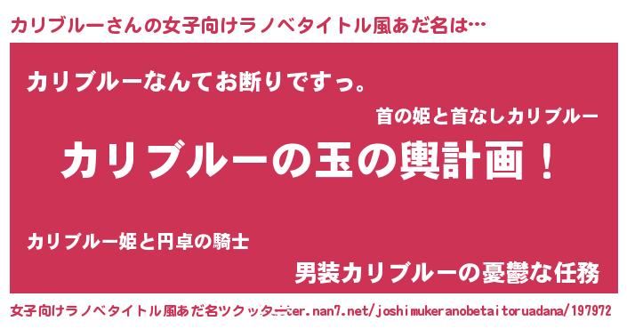 | 男性向けラノベタイトル風あだ名 | 『転生したらカリブルーだった件』 |