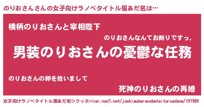 | ヒーロー風カッコイイあだ名 | 『慈愛の使者のりおさん』『黄金騎士ノリ』 |
