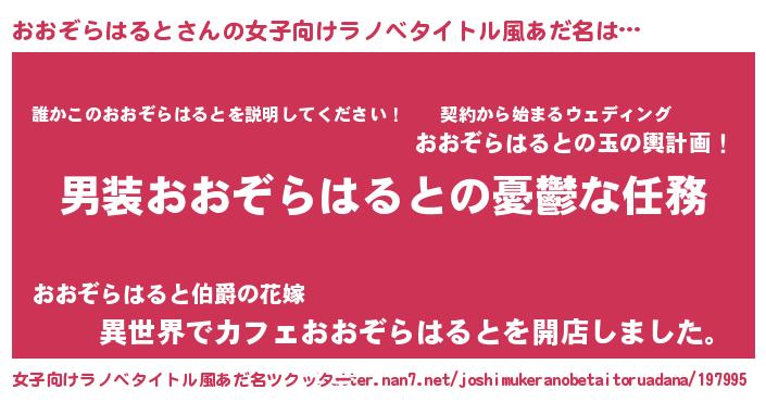 | 男性向けラノベタイトル風あだ名 | 『うちのおおぞらはるとが世界を掌握している!』 |