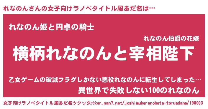 | ファンタジー風あだ名 | 『レナフェル』『レナディッシュ』 |