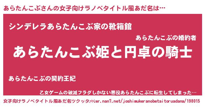 | 男性向けラノベタイトル風あだ名 | 『アラタンコブアートオンライン』 |