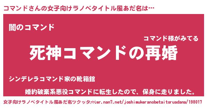 | 男性向けラノベタイトル風あだ名 | 『ノーゲーム・ノーコマンド』 |