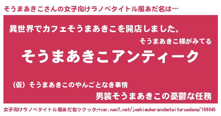 | 男性向けラノベタイトル風あだ名 | 『魔法科高校のそうまあきこ』 |