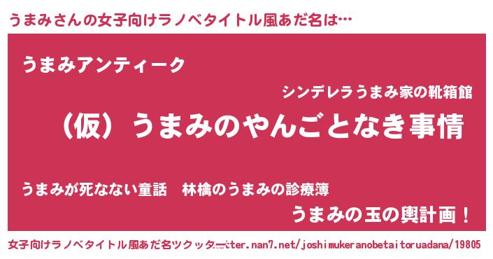 | 胡散臭い通販商品みたいなあだ名 | 『必ず成功する霊験あらたかなお札…その名も「うまみ」』 |