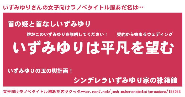 | 男性向けラノベタイトル風あだ名 | 『ダンジョンにいずみゆりを求めるのは間違っているだろうか』 |