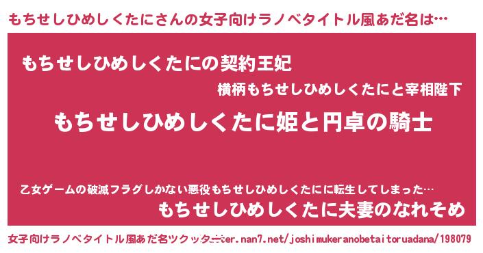 | 男性向けラノベタイトル風あだ名 | 『もちせしひめしくたにの憂鬱』 |