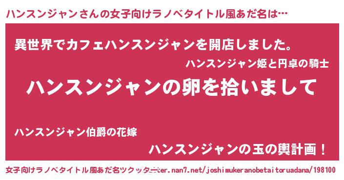 | ヘコむあだ名 | 『ハンっちょ』『ハンスンジャン(笑)』 |