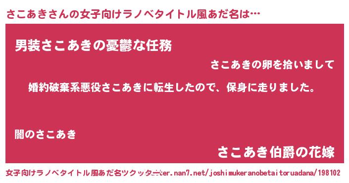 | 男性向けラノベタイトル風あだ名 | 『サコアキスレイヤー』 |