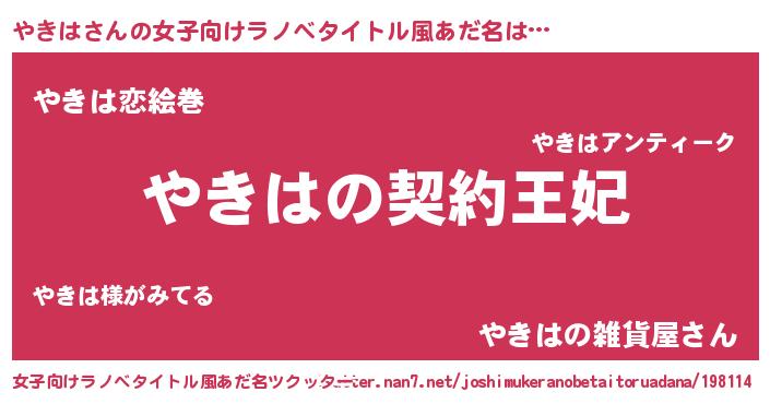 | 胡散臭い通販商品みたいなあだ名 | 『来世でも幸せになれる健康食品…その名も「やきは」』 |