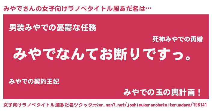 | ポケモン風あだ名 | 『ミヤセウス』『メロミッヤ』 |