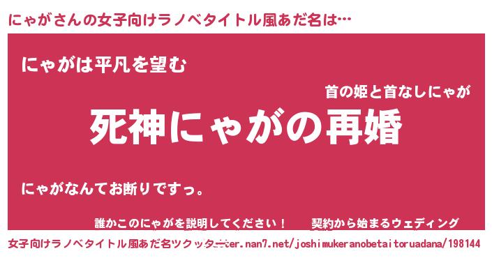| ヒーロー風カッコイイあだ名 | 『慈愛の使者にゃが』『幻影騎士ニャ』 |