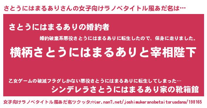 | 胡散臭い通販商品みたいなあだ名 | 『運命の人と巡り会える高級そうな絵画…その名も「さとうにはまるあり」』 |