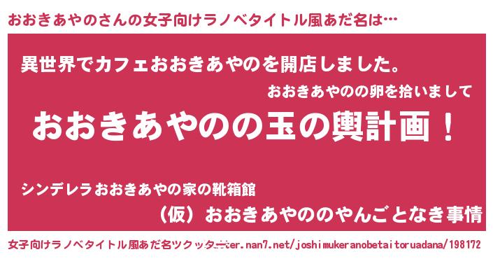 | ヘコむあだ名 | 『おおきあやの(爆)』『おおにゅー』 |