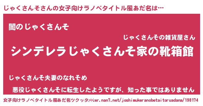 | 意味不明あだ名 | 『自称じゃくさんそ』 |