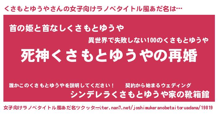 | ヒーロー風カッコイイあだ名 | 『慈愛の使者くさもとゆうや』 |