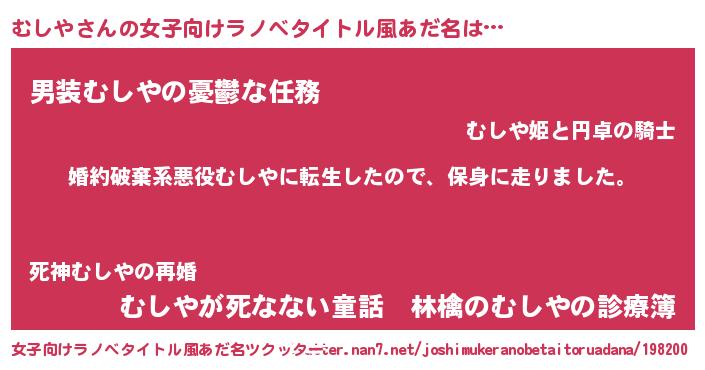 | ピコ太郎風あだ名 | 『ムコ四郎』『ムム太郎』『ムシ六郎』 |