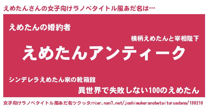| 肩書あだ名 | 『えめたん閣下』『えめたん国家主席』 |