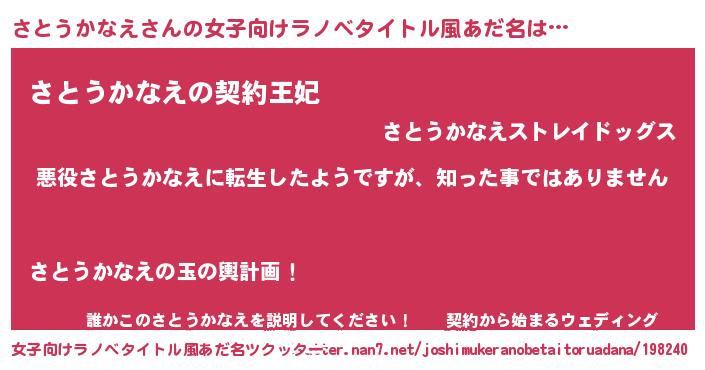 | 男性向けラノベタイトル風あだ名 | 『この素晴らしい世界にさとうかなえを!』 |