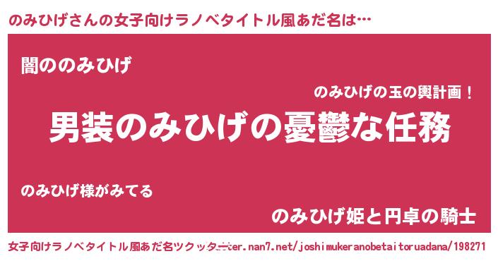 | ヒーロー風カッコイイあだ名 | 『最強戦士ノミヒゲ』『スーパーノミヒゲ』 |