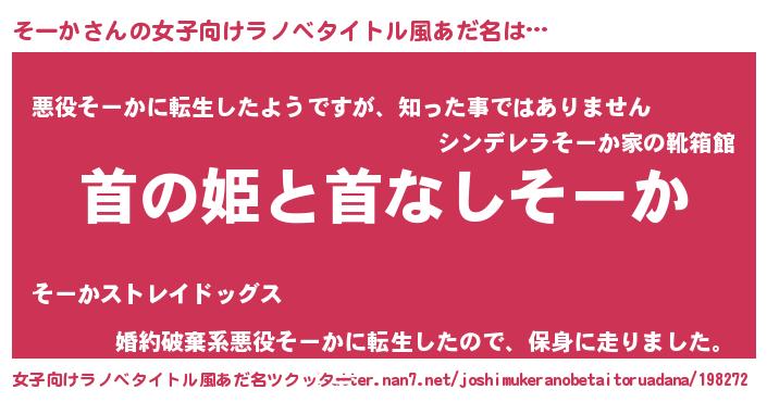 | 男性向けラノベタイトル風あだ名 | 『はたらくそーかさま!』『緋弾のソーカ』 |