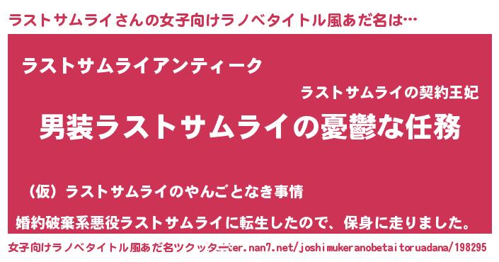 | 男性向けラノベタイトル風あだ名 | 『うちのラストサムライが世界を掌握している!』 |