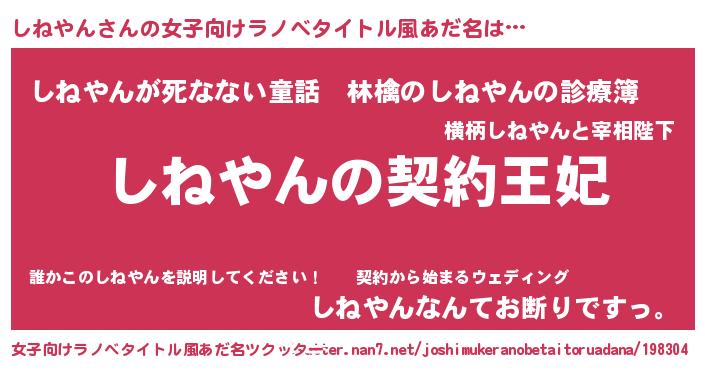 | 男性向けラノベタイトル風あだ名 | 『誰もが恐れるあのしねやんが、ぼくの専属メイドになるようです。』 |
