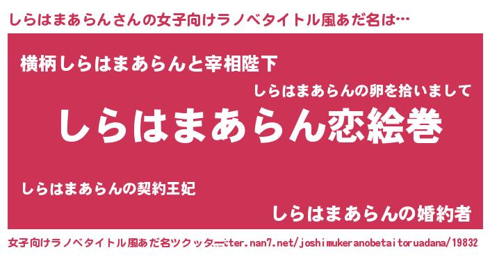 | 男性向けラノベタイトル風あだ名 | 『おまえをオタクにしてやるから、俺をしらはまあらんにしてくれ! 』 |