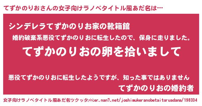 | 男性向けラノベタイトル風あだ名 | 『ダンジョンにてずかのりおを求めるのは間違っているだろうか』 |