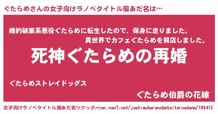 | ヒーロー風カッコイイあだ名 | 『慈愛の使者ぐたらめ』『ネオグタラメ』 |