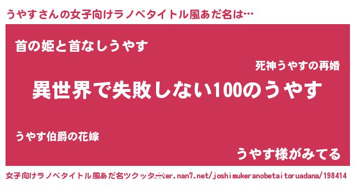 | 男性向けラノベタイトル風あだ名 | 『うやすという概念が存在しない退屈な世界 』 |