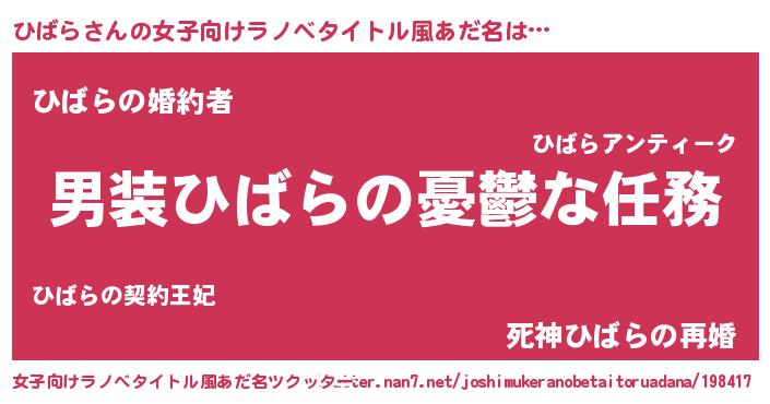 | 男性向けラノベタイトル風あだ名 | 『冴えないひばらの育てかた』 |