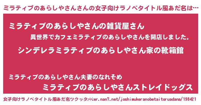 | 意味不明あだ名 | 『ミラティブのあらしやさんフォーエバー』 |