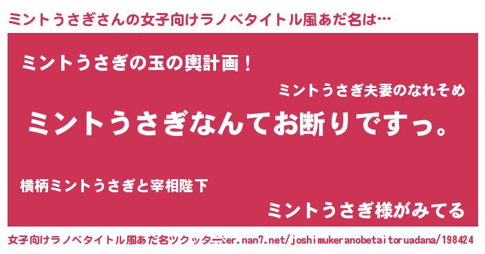 | 胡散臭い通販商品みたいなあだ名 | 『ガンによく効くアガリクス…その名も「ミントうさぎ」』 |