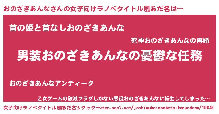 | 意味不明あだ名 | 『住所不定無職おのざきあんな(65歳)』 |