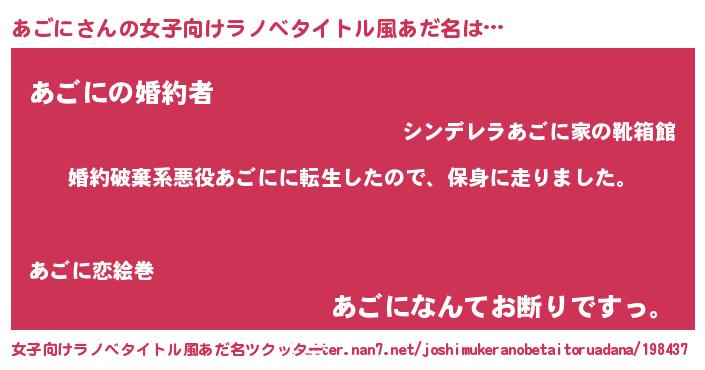 | 意味不明あだ名 | 『めかぶ科あごに属』『自称あごに』 |