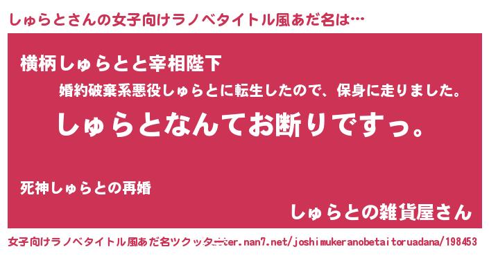 | 意味不明あだ名 | 『自称しゅらと』『しゅらとフォーエバー』 |
