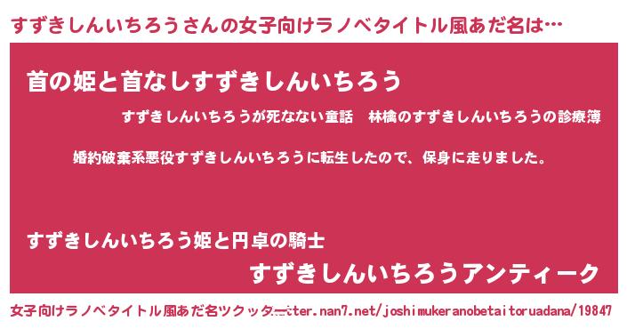 | 男性向けラノベタイトル風あだ名 | 『スズキシンイチロウスレイヤー』 |