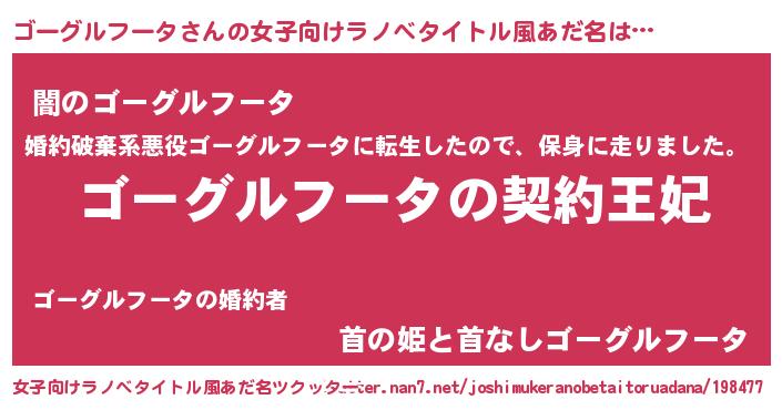 | 男性向けラノベタイトル風あだ名 | 『誰もが恐れるあのゴーグルフータが、ぼくの専属メイドになるようです。』 |