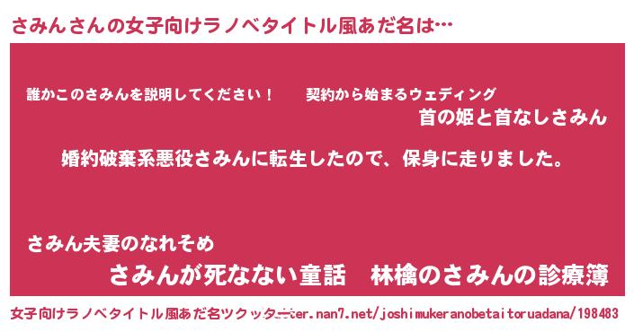 | 男性向けラノベタイトル風あだ名 | 『サミンスレイヤー』『魔弾の王とさみん』 |
